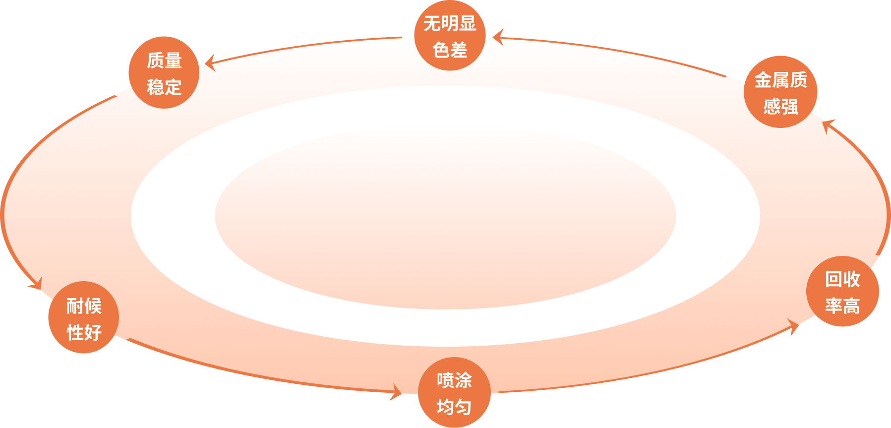 “漆改粉”特色品種,顏色穩定金屬效果強,對金屬基材附著力好;金屬粉末涂料采用德國進口綁定機生產,批次色差穩定。避免了干混金屬粉積槍頭現象,新粉回收粉同樣可應用;金屬效果顏料含量高,立體幻彩閃爍效果; ...